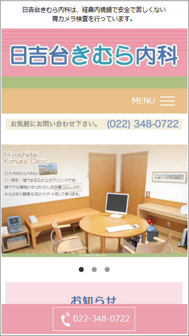 富谷市の日吉台きむら内科様のホームページをリニューアルしました。