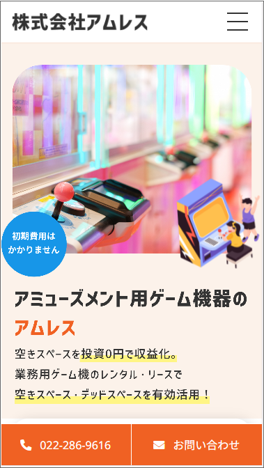 アミューズメントゲーム機を取り扱いの株式会社アムレス様の ホームページを新規作成しました。